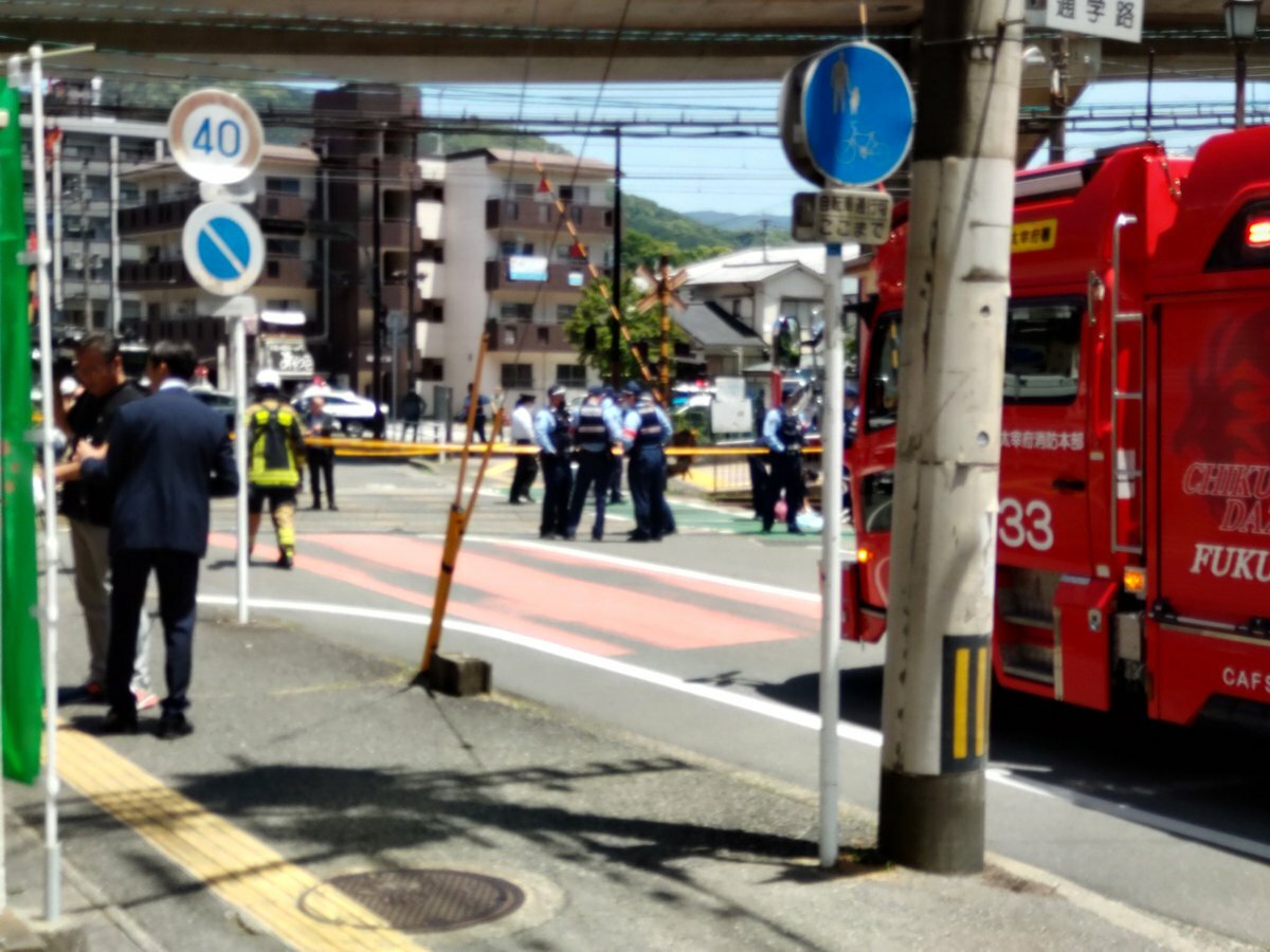 『都府楼前駅で事故かいな?なんか凄かったばい🤔』