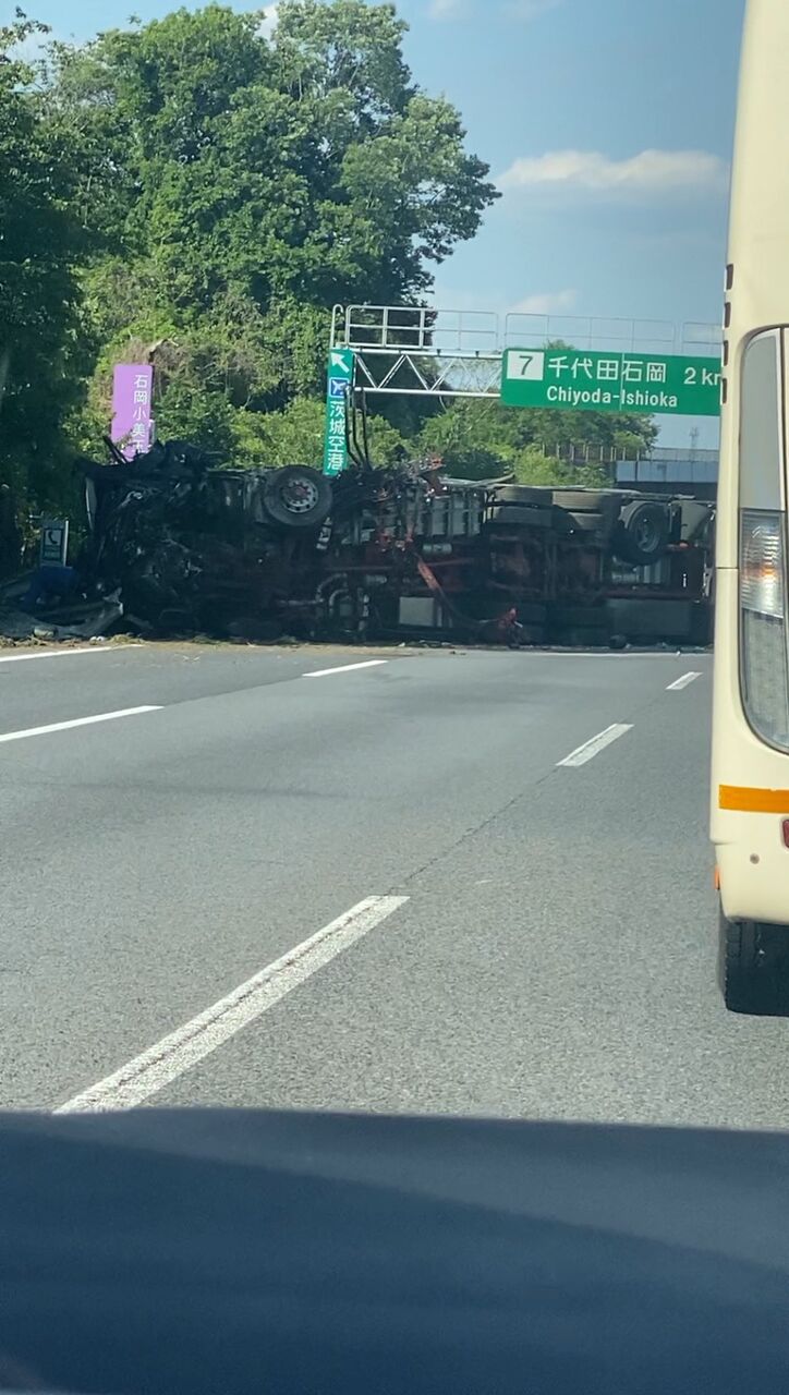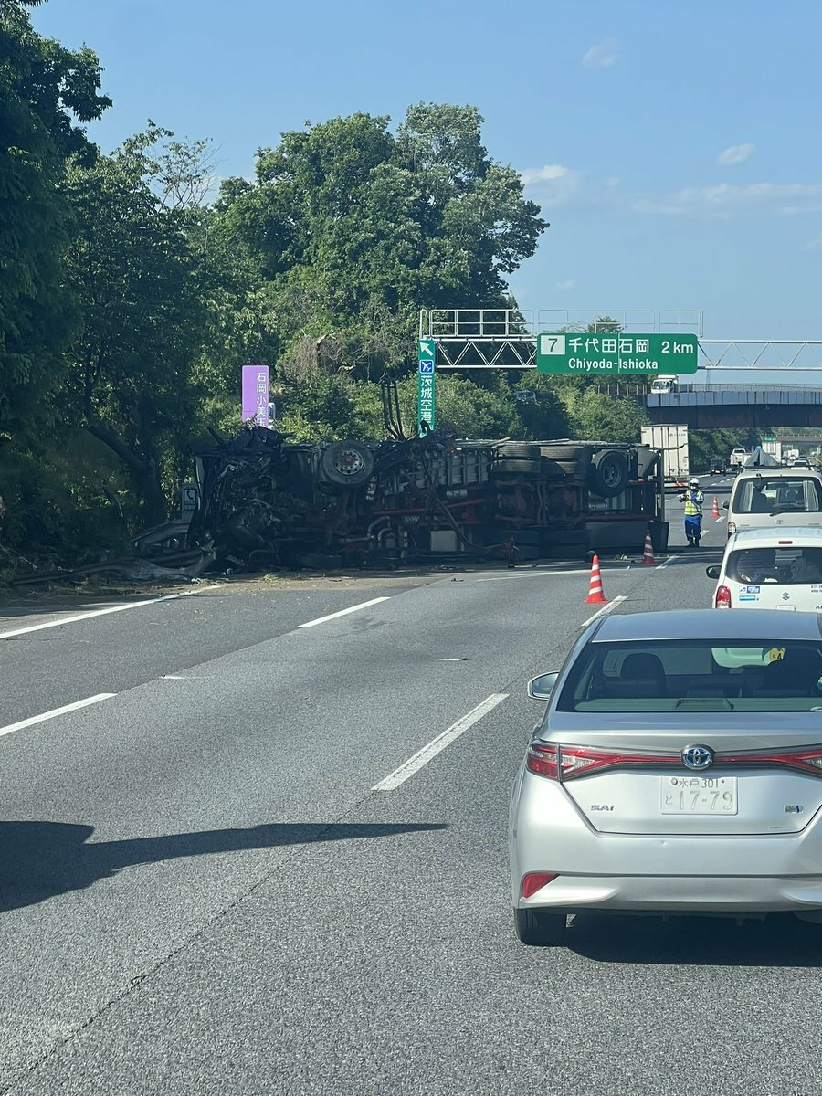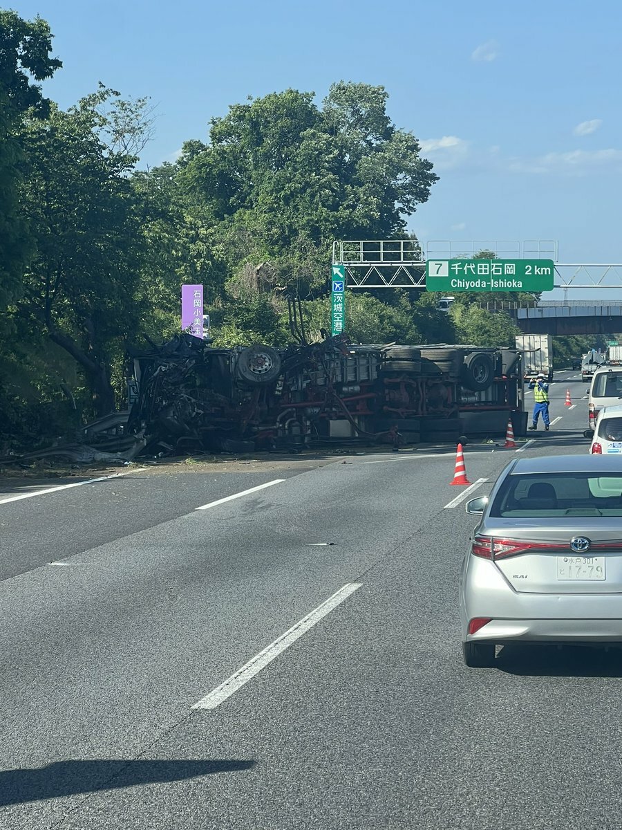 常磐自動車道下り、トラック横転事故😭 pic.twitter.com/ptwyQWquxb