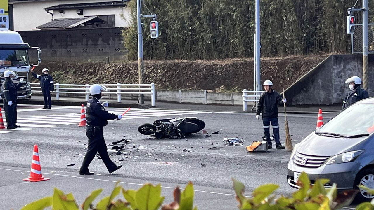 『国道16号野田から柏方面で事故です。PCX粉々に』