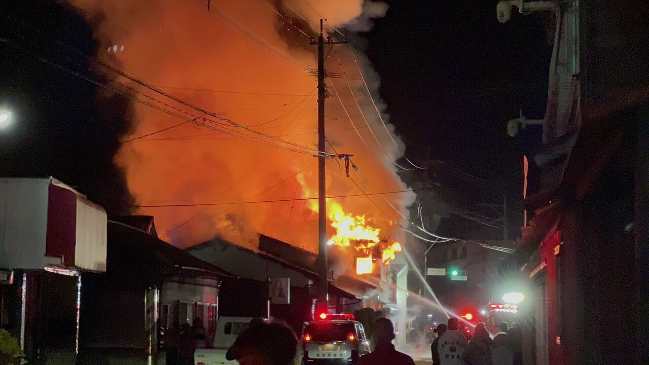 福岡県久留米市三潴町玉満 付近1時間以上、激しく燃え続け3時25分頃にほぼ消火され、残り火の確認中。 pic.twitter.com/uwLNBIRnci