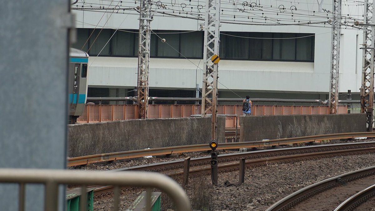 青いシャツ着たバカ外人が新橋→有楽町の線路を歩いてるのを電車から見えた。