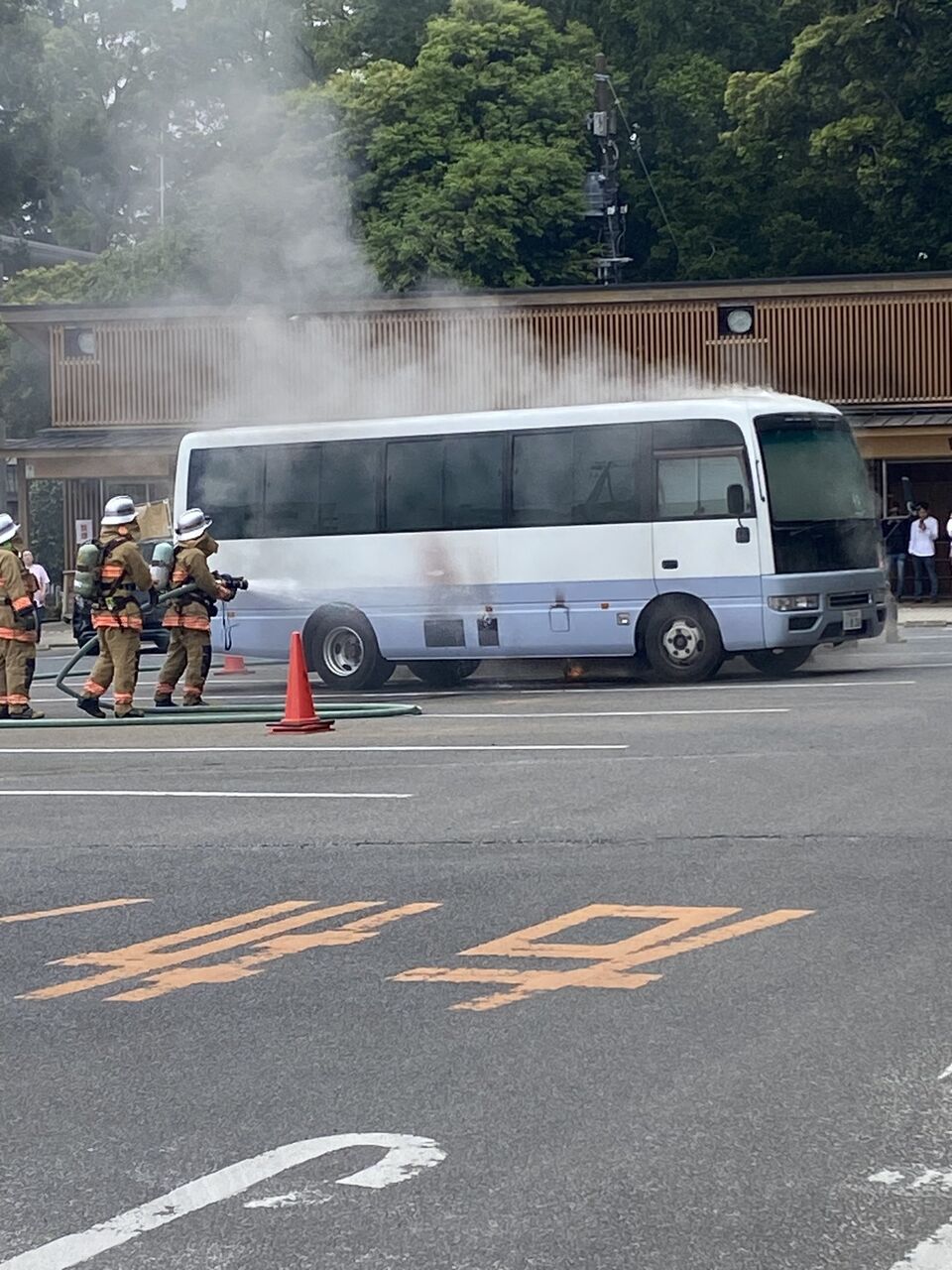 鹿島神宮の駐車場でマイクロバスから火が😮