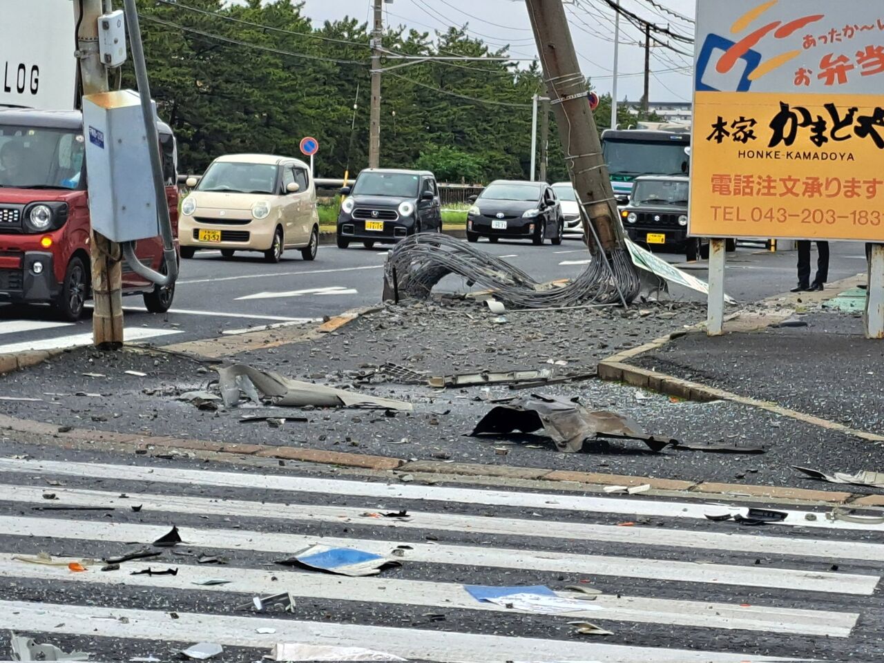 【現場の様子】#交通情報 千葉県千葉市美浜区新港 千葉運輸支局交差点付近 電柱破壊する衝突横転事故で規制渋滞5月20日 #千葉 #美浜区