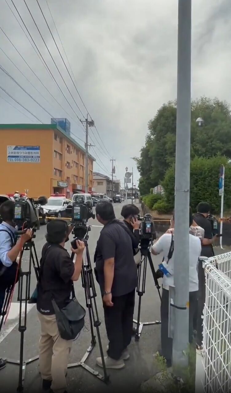 【現場の様子】『楯を持った警察官やマスコミがたくさん来てる』#注意喚起 熊本市中央区出水 湧心館高校南側アパート付近から拳銃の発砲音 周辺道路を規制封鎖5月20日 #熊本 #銃