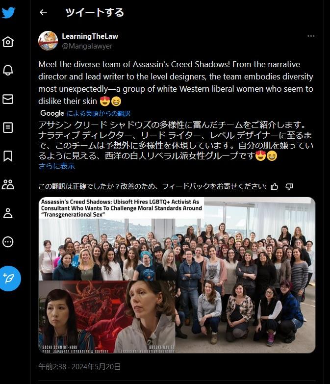 【悲報画像】女さん「あたしたちがアサシンクリードを作ってます、差別のない多様性のあるチームです」 2024/5/20 速報 1: document.write(” + ”); 関連記事 document.write(” + ”); 続きを読む ——— Source: アルファルファモザイク 【悲報画像】女さん「あたしたちがアサシンクリードを作ってます、差別のない多様性のあるチームです」