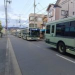 『京都の上賀茂神社近辺が大渋滞中!今、上賀茂車庫前から上賀茂神社までの道路にバスが40台以上並んでる。整理してる人に聞いたら、上賀茂神社前か...