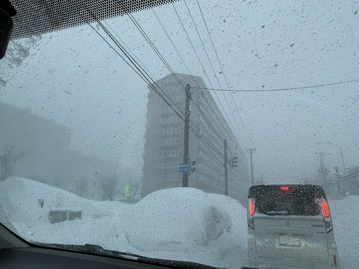 『所用で発寒まで出かけてきたけど、下手稲通りの手稲区側は除雪が追いついてなく、吹雪でガッタガタ道路、四駆じゃなきゃ厳しい状況でした😵💫』