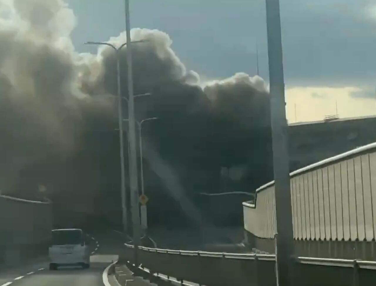 工場火事、西淀川付近かな