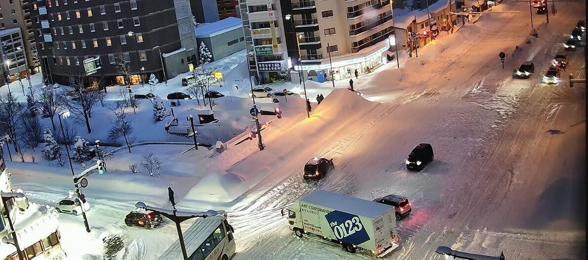 36号と創成川の前の交差点にあるライブカメラ見たら引っ越し屋のトラックが立ち往生して道塞いでいるとても気の毒な映像が流れてきた