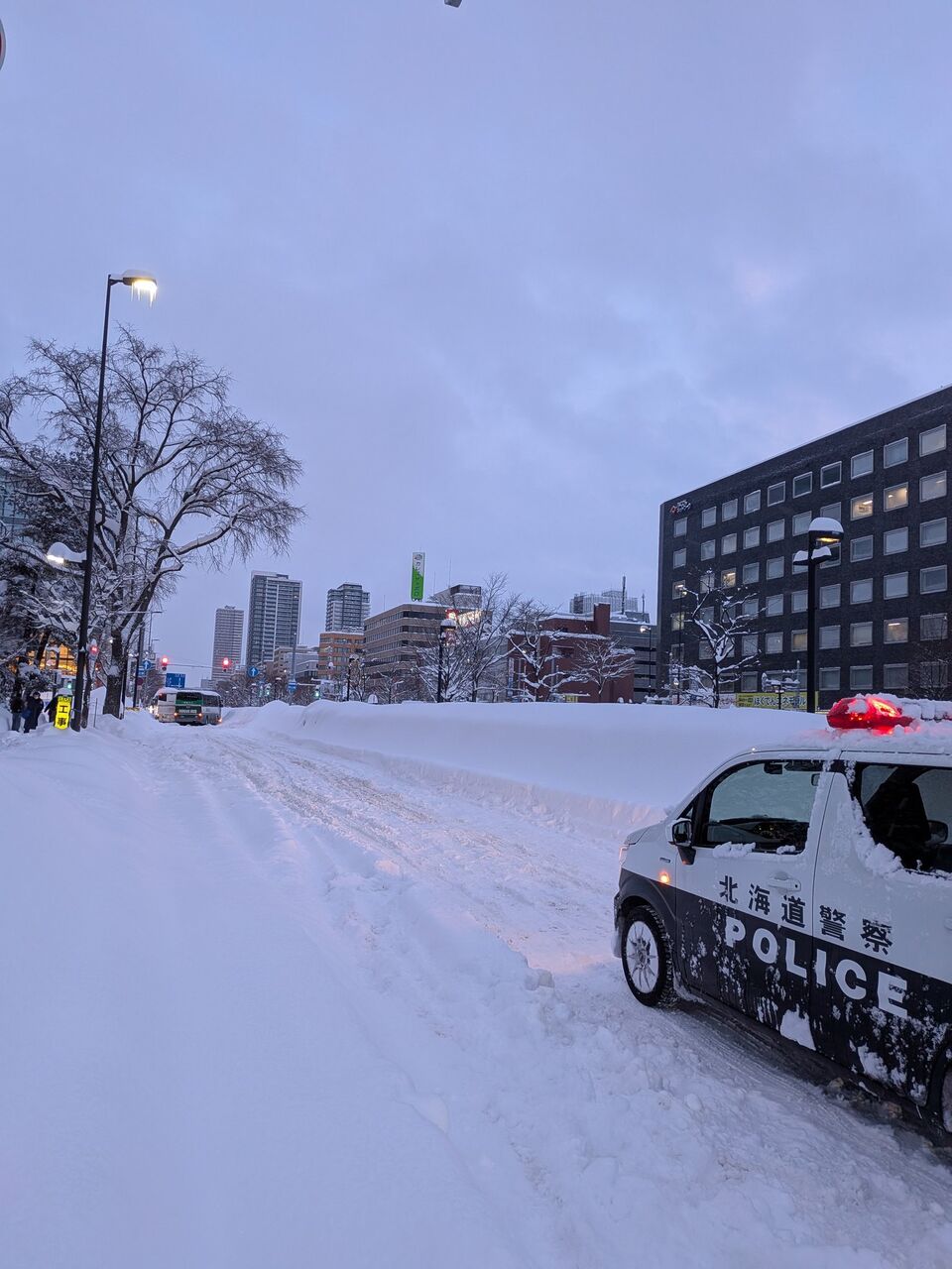 こんな豪雪で渋滞の日に創成川通りで路駐するな🫵🏼😡