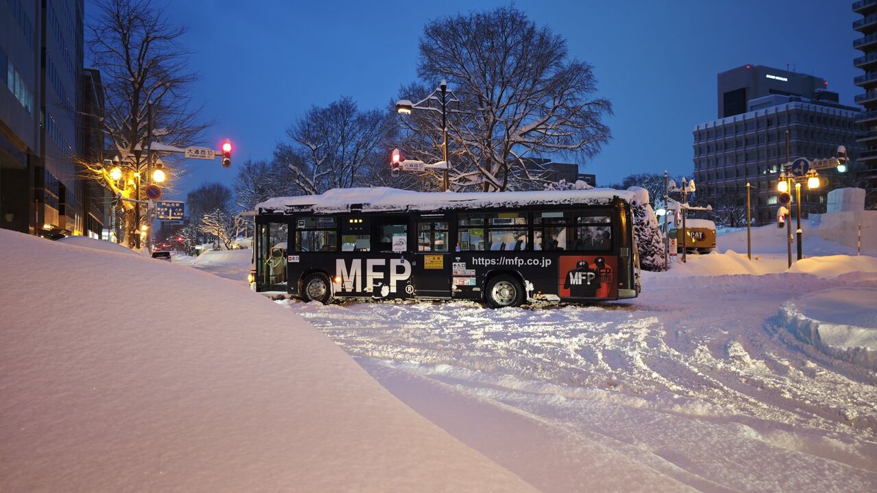 うわぁ、ここは交差点の真ん中でバスがヤラれてる。大通公園の自衛隊みんなきたほうがいいんじゃね? pic.twitter.com/rrUtRKc7kz