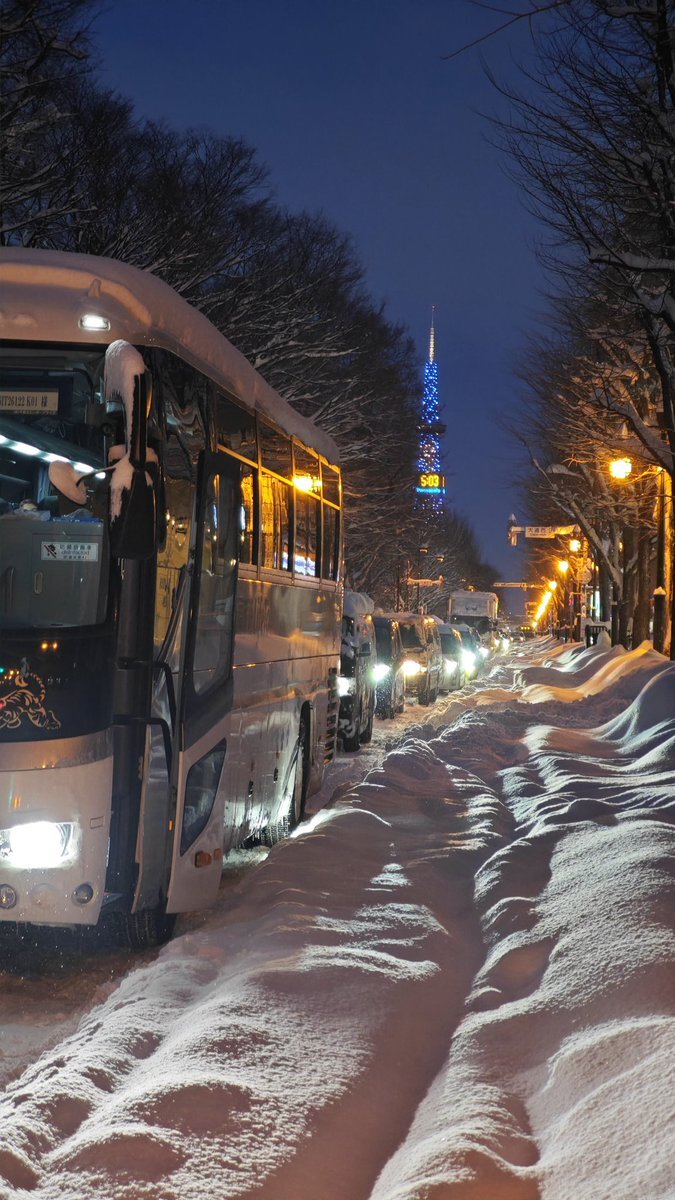 【現場の状況】#交通情報 創成川通 北海道札幌市中央区北1条西1丁目付近 観光バス接触スタック事故で一時通行止め渋滞 さらに大通でもバススタック1月25日 #札幌 #大雪 #寒波 #バス