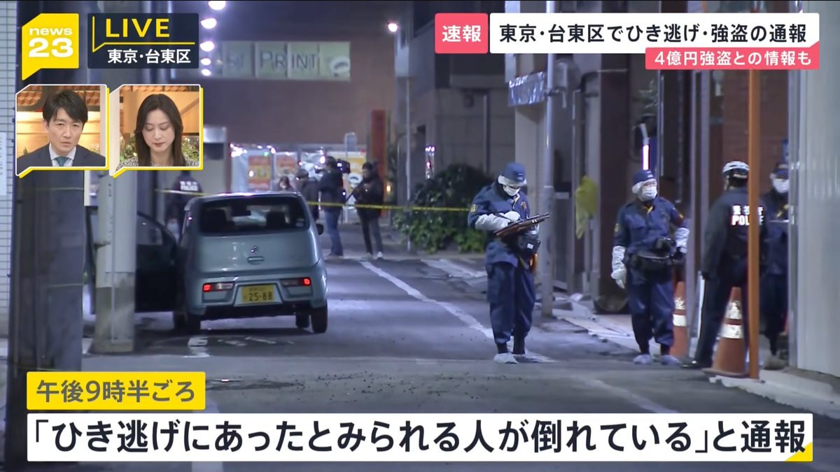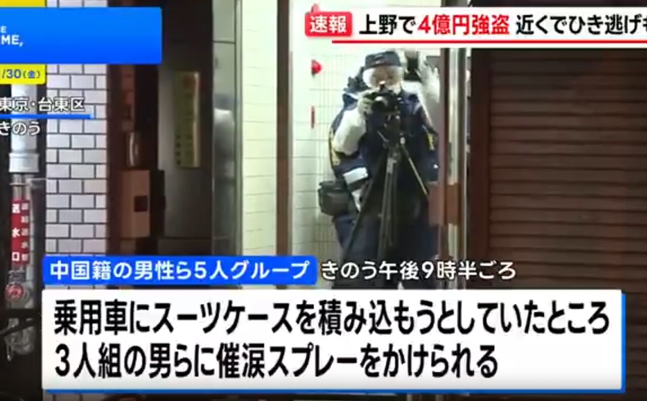 【目撃証言】『目が血走った中国人集団が車を追いかけてた』東京都台東区東上野1丁目付近で強盗事件 中国人グループ4億円盗まれた通報 近くでひき逃げも 犯人逃走中1月29日 #台東区