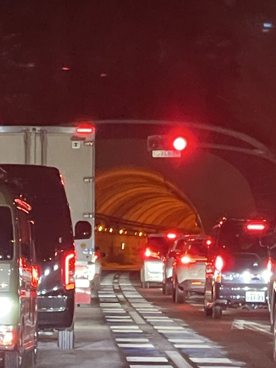『アホが事故って関越道止まる気がしたから早めに高速乗って来たけど、目の前で関越トンネル通行止めね。』