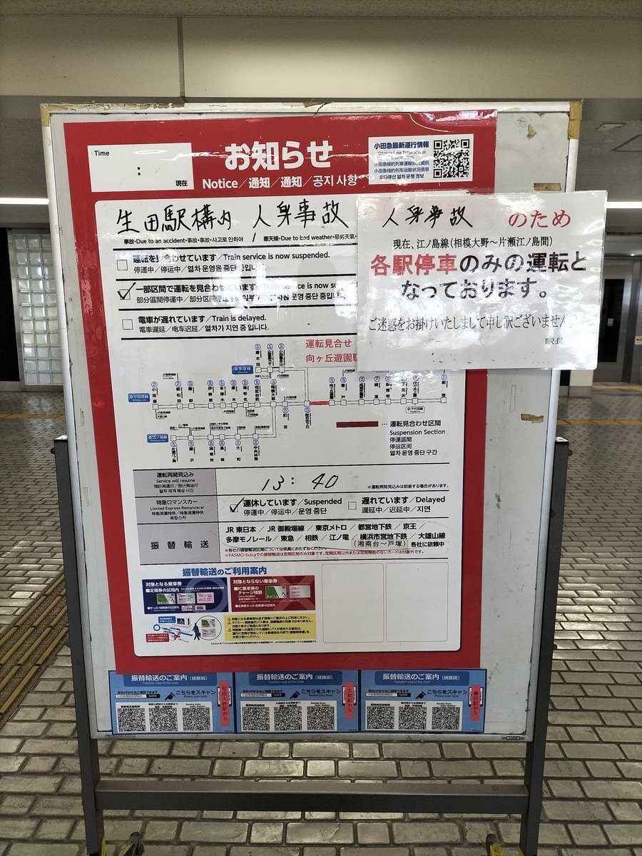 小田急線生田駅で人身事故 pic.twitter.com/thgbSaiw5u