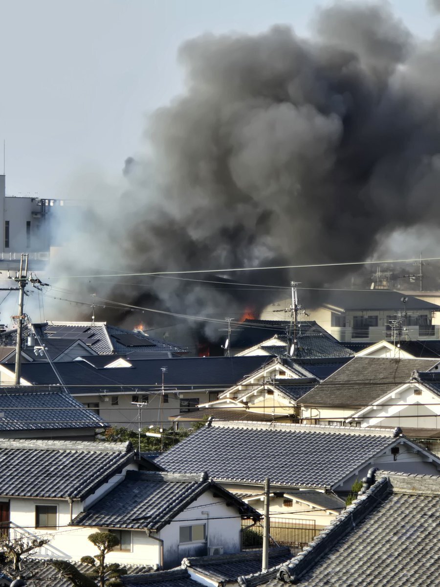 お休みで家にいたらサイレンが近いので外に出てみたら近くで火事です〜