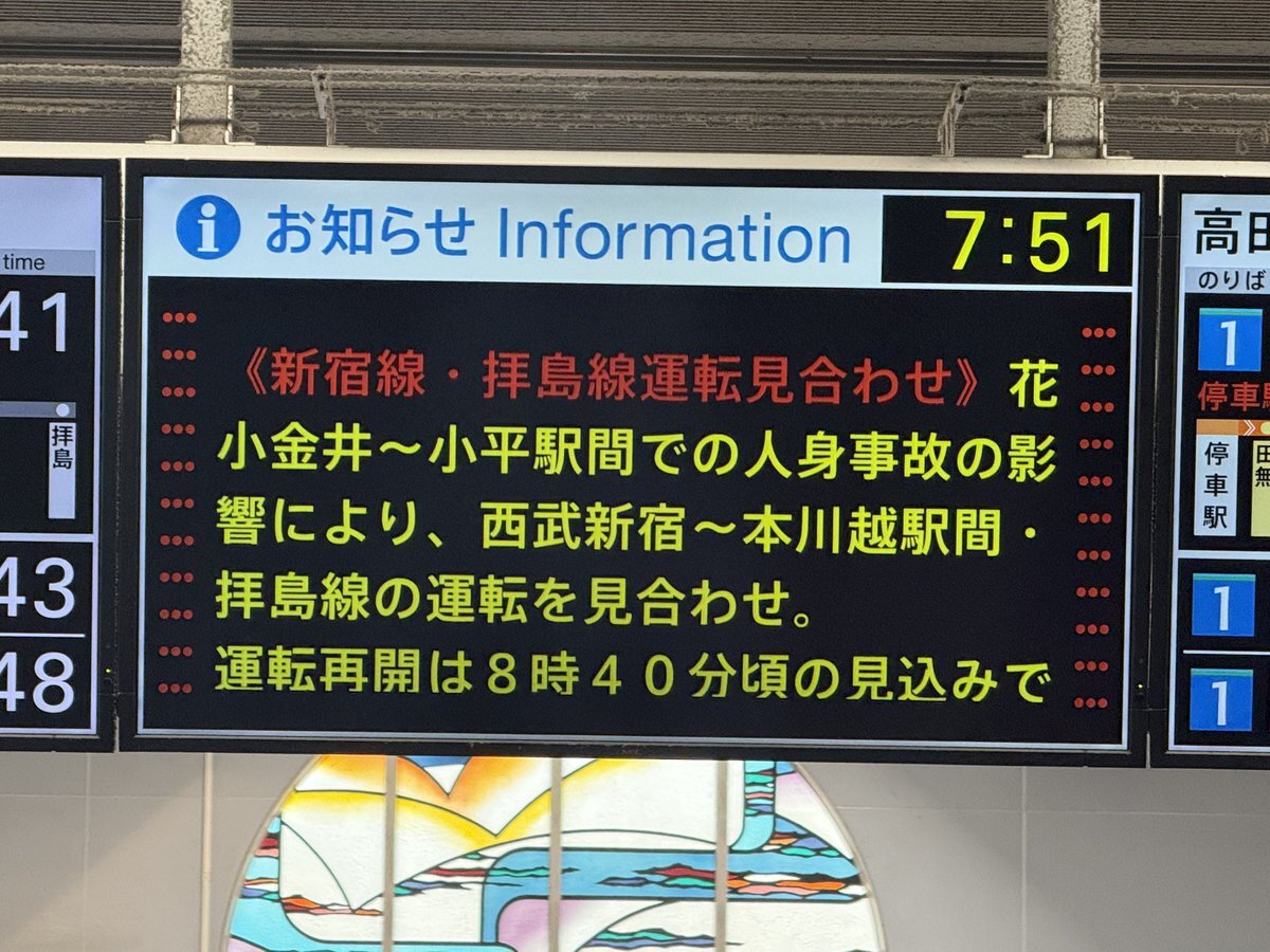 花小金井〜小平の間で電車に乗る時にいきなり人身事故💢