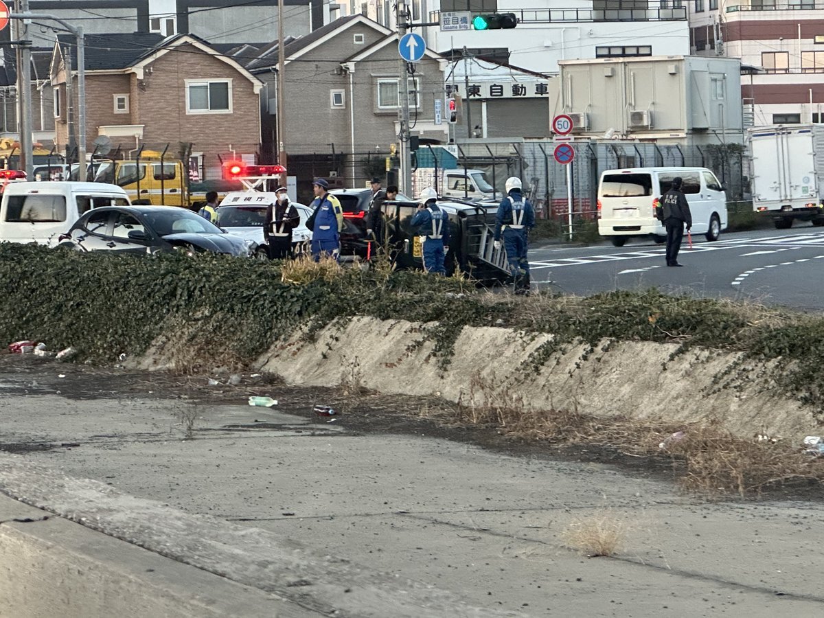 『新大宮バイパス笹目橋のとこ車ひっくり返ってんのw』