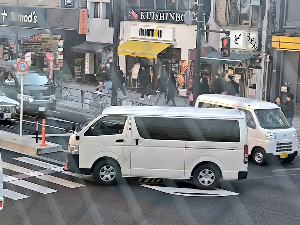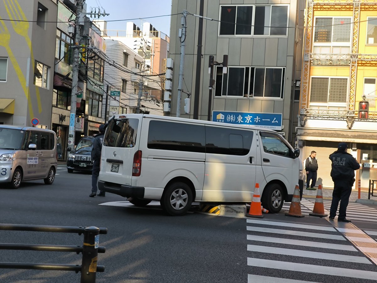『中目黒駅前でハイエースが亀になっとる恥ずかしー』
