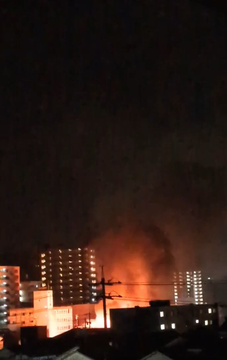 サイレンで起こされた挙句停電までして何事やと思ったら家の近くの精肉屋燃えてるやんけ! pic.twitter.com/0Ycjz3W8Pc