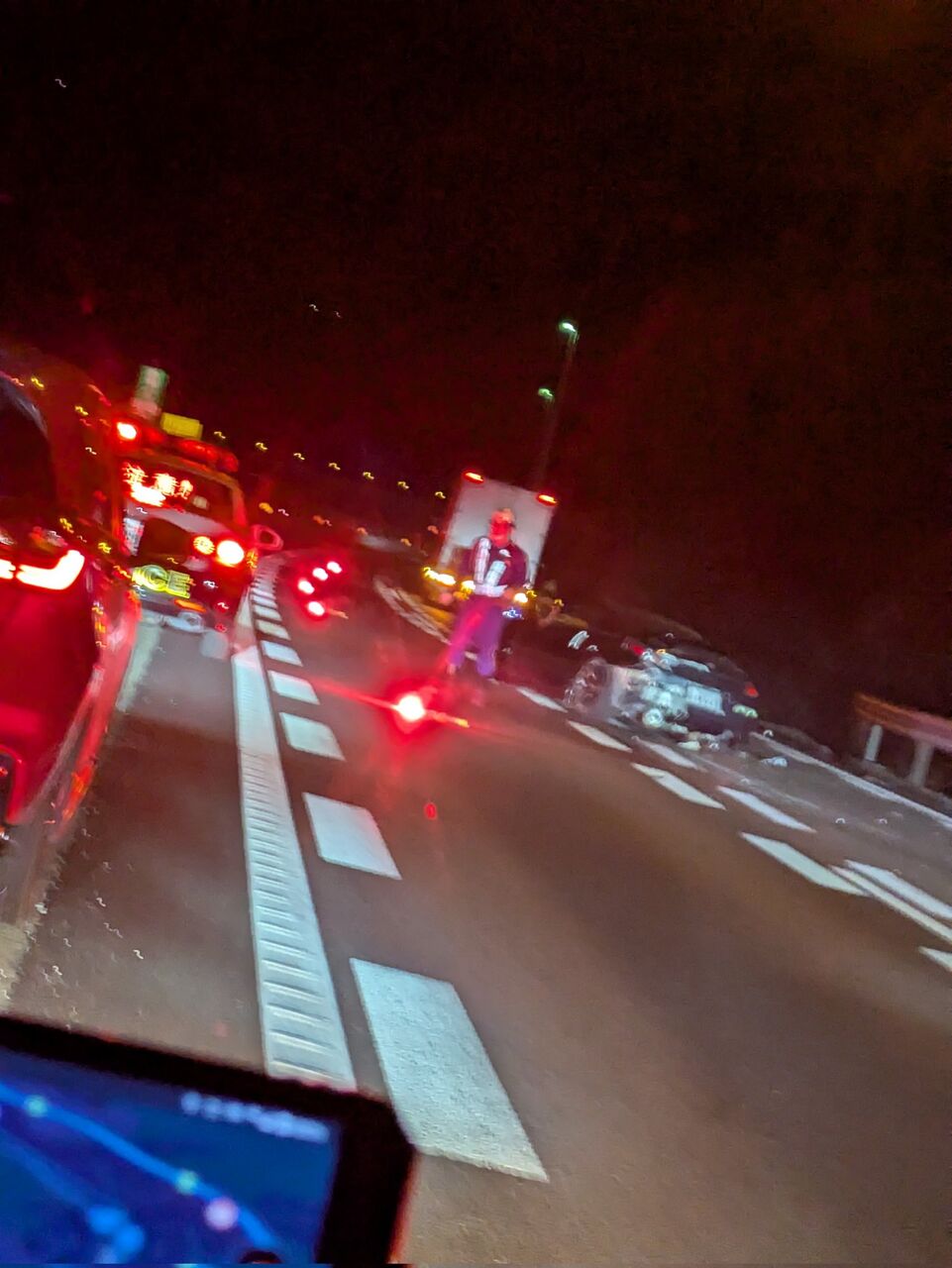 友人と一緒に夜中に高速でラグコス向かってるけど、まさか高速で事故渋滞に引っ掛かるとは……