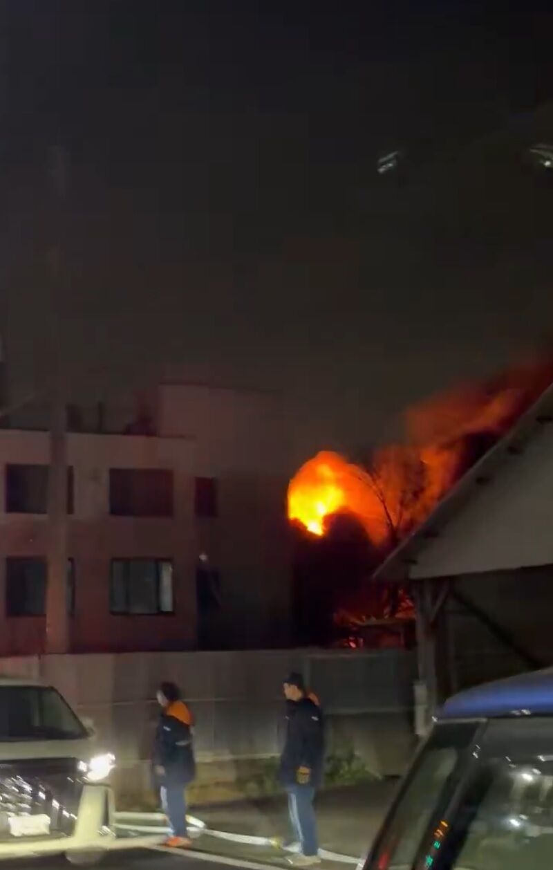 【火事情報】埼玉県蓮田市上平野付近 県道77号線沿い付近 建物から炎あがる火災 周辺道路渋滞2月23日 #埼玉 #蓮田 #火災