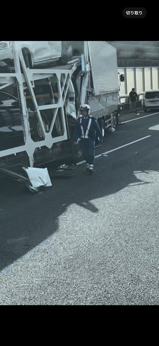 工事渋滞でカーブのところだったから列が見えなかったんだろうな積車の載ってた1台目も潰れてた