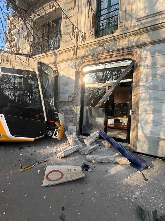 ミラノ中心部で27日、路面電車が軌道を外れて激しく脱線し、沿道の建物に突っ込みました。