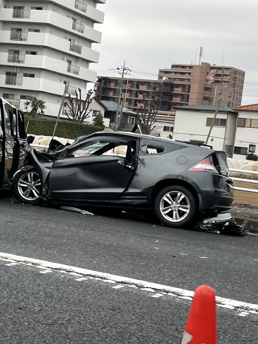 国道6号線上り柏市豊町?イオンの先で車がバラバラになってて緊急車両何台いるんだこれ?#国道6号線 #南柏 #事故