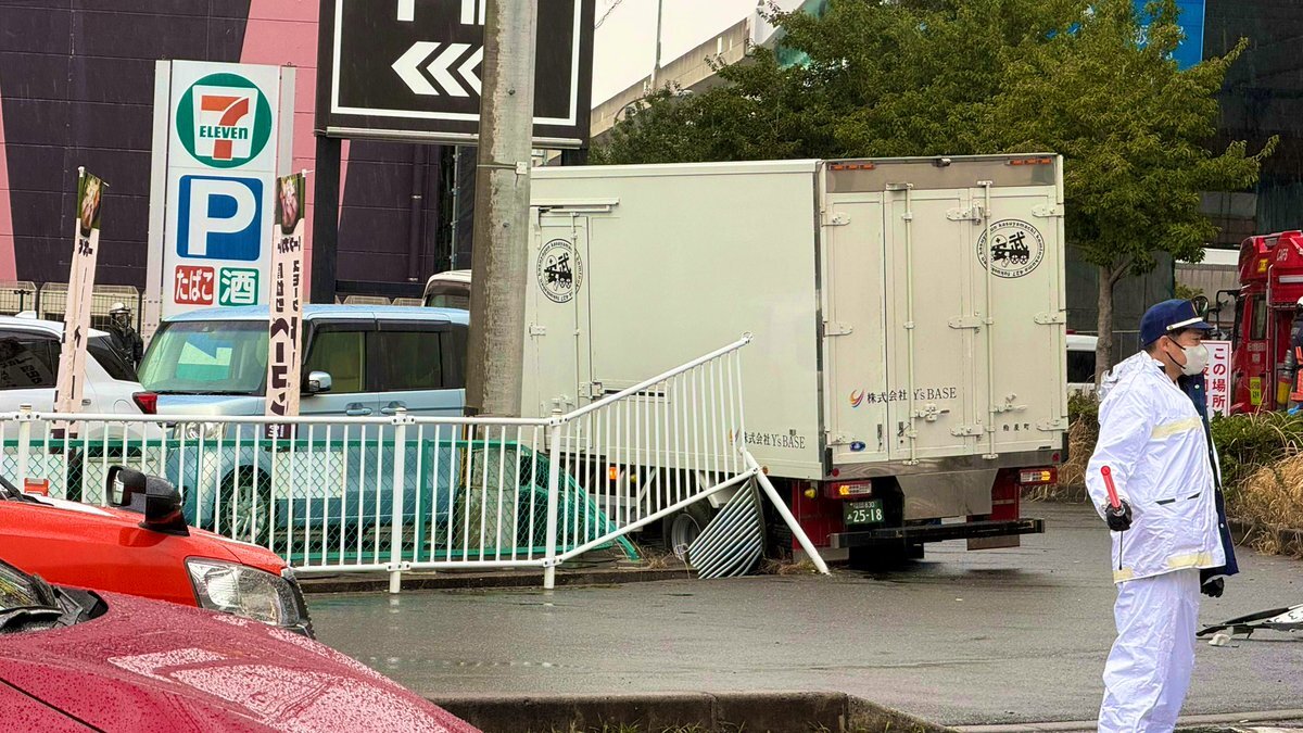 【現場の状況】#交通情報 国道3号線 福岡南バイパス 北行き 福岡県大野城市御笠川1丁目ラウワンココイチ付近 駐車場フェンスにトラック突っ込む事故3月2日 #福岡 #大野城