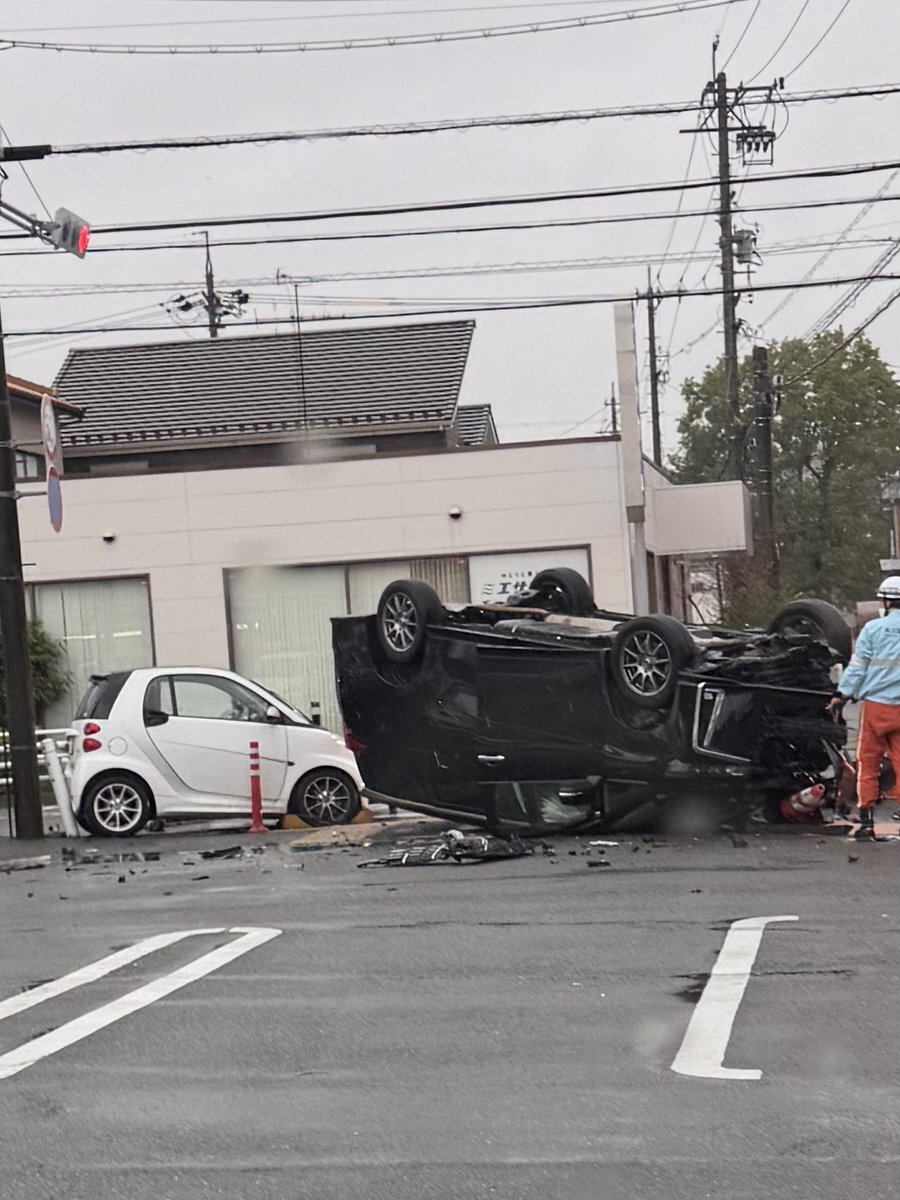 smart頑丈なんだな…とりあえず警察も救急も来てくれたから帰ったけど、雨の日は特にみんな気をつけて☔️ pic.twitter.com/9miPdYbhiy