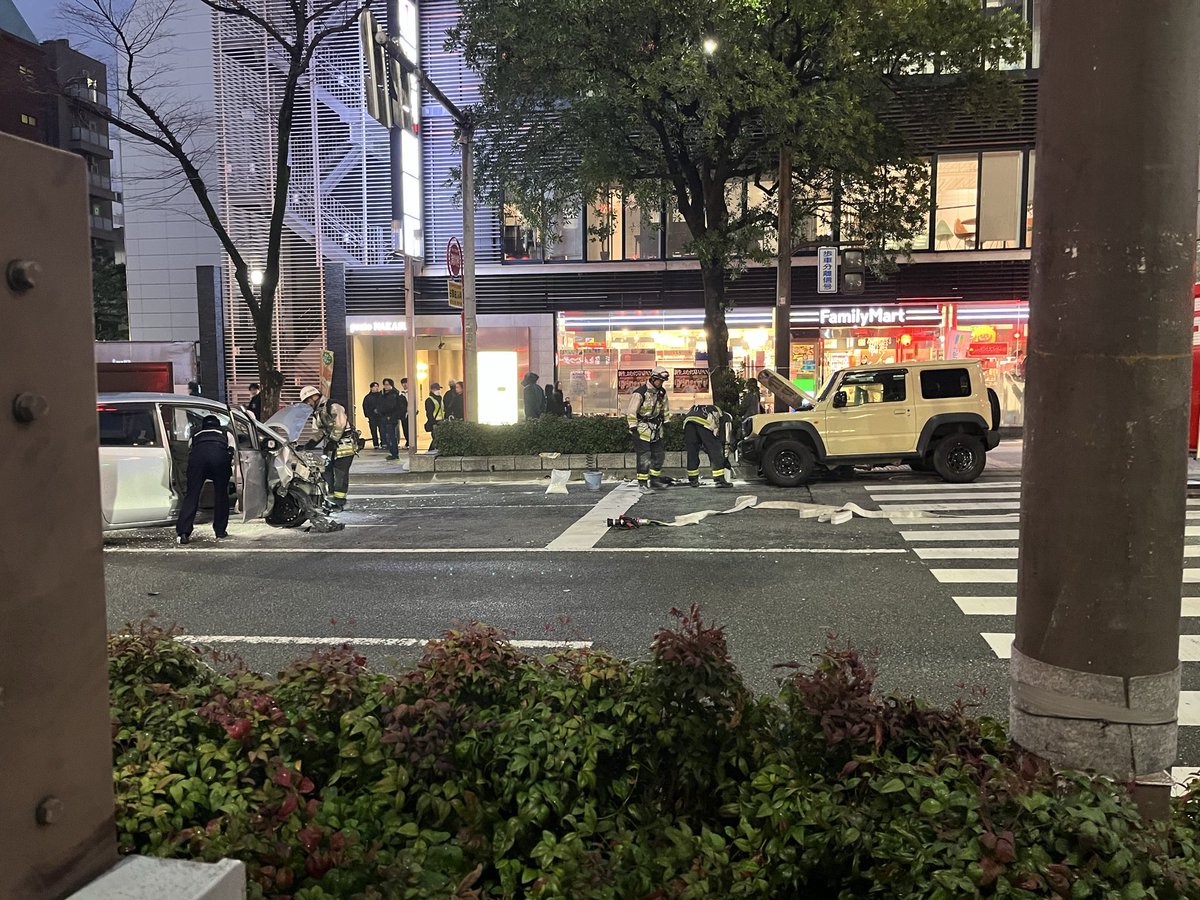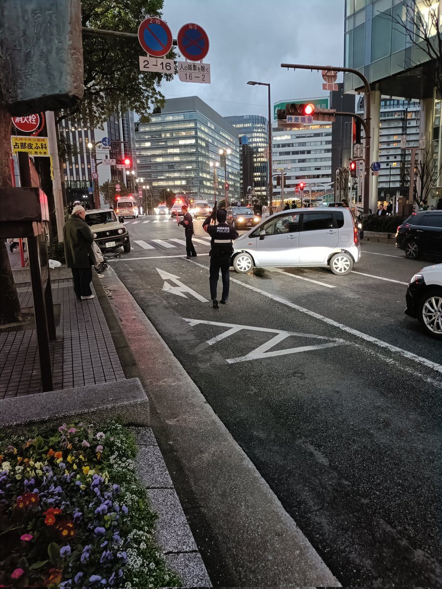 【現場の状況】#交通情報 明治通り 福岡県福岡市博多区中洲5丁目 一蘭本店付近 破片散乱車線塞ぐ衝突事故で規制渋滞3月3日 #福岡 #中洲