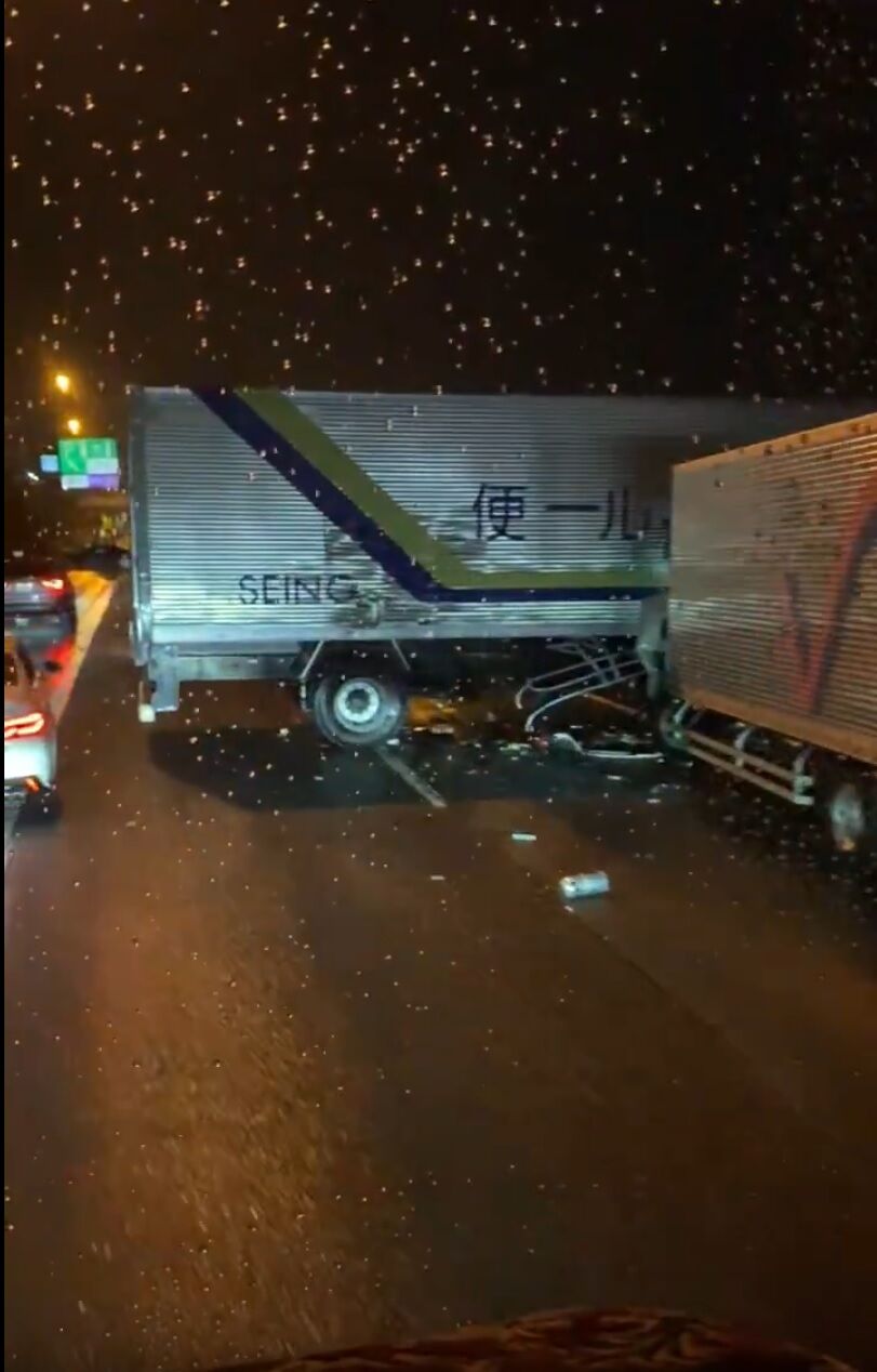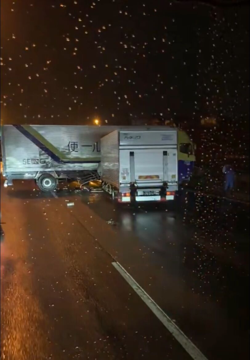横向いたトラックの先にも一般車が事故起こしてるから、事故を回避しようとしたトラックが雨でスリップして横向いちゃって大惨事。みたいな感じだろうか? pic.twitter.com/Szgg5bnjaX— 元キモロン毛 (@4Kusomegane) March 3, 2026