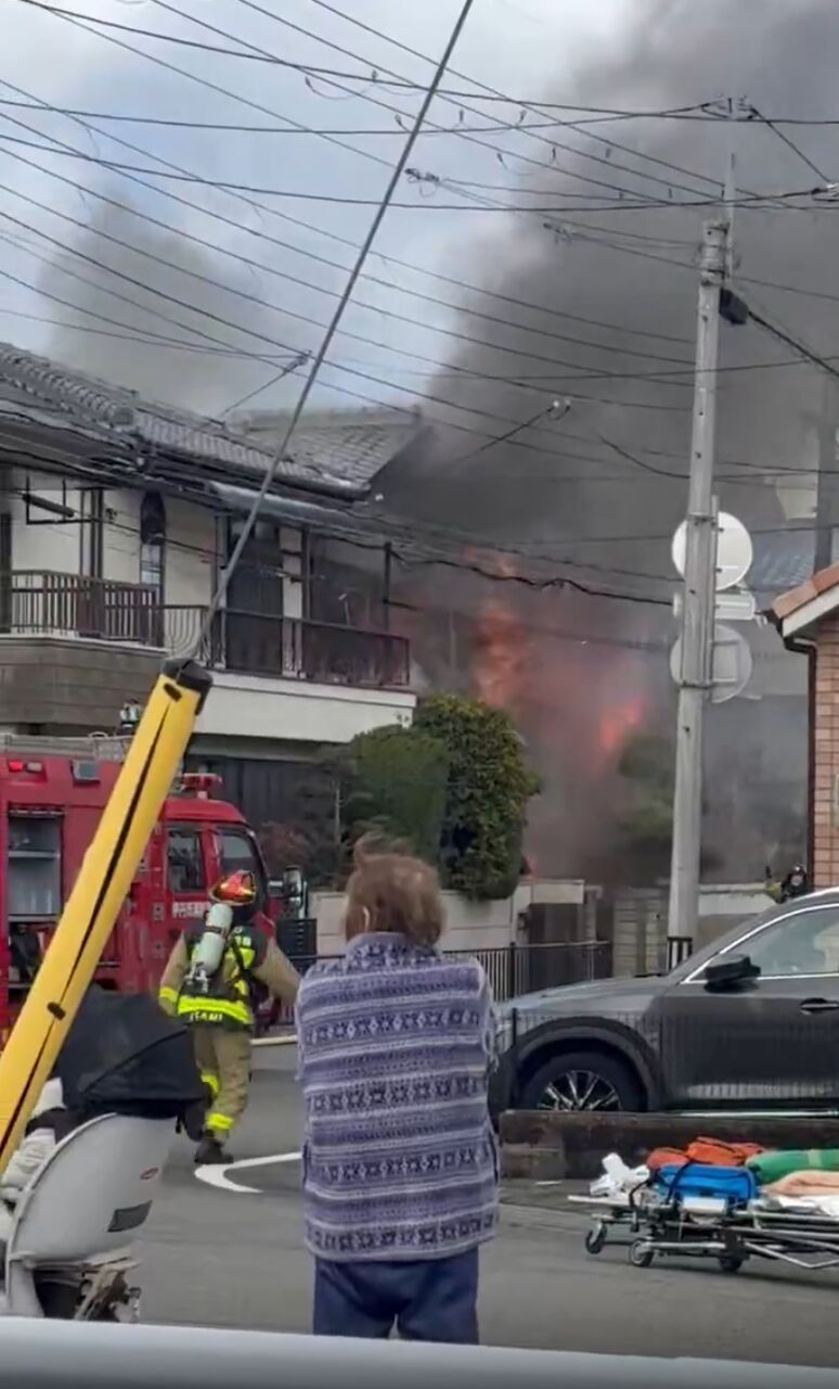 【火事情報】兵庫県伊丹市南鈴原3丁目 南陵公園近く住宅建物から炎と煙あがる火災 消防車13台出動3月4日 #兵庫県 #伊丹 #火災