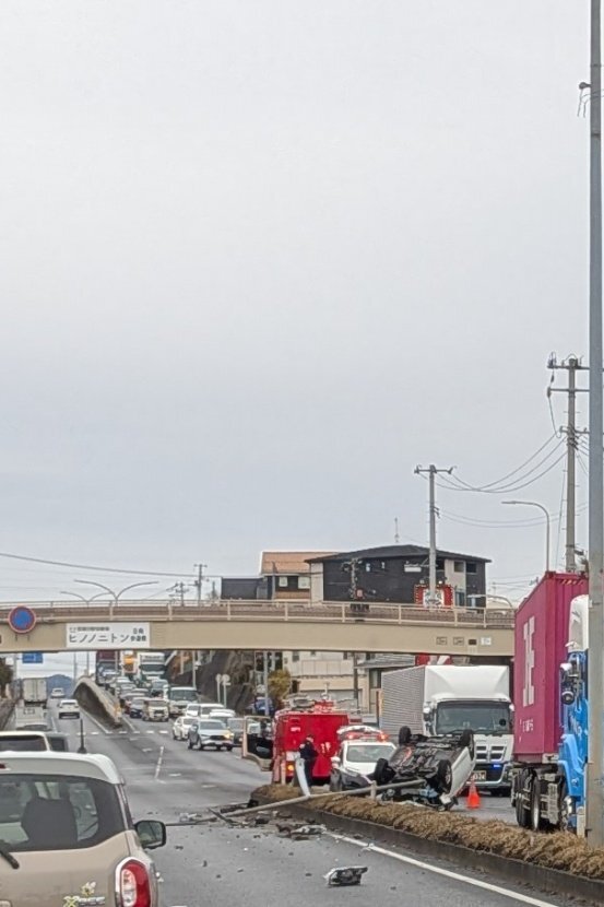 【現場の状況】#交通情報 利府街道 宮城県仙台市宮城野区岩切 日向歩道橋付近 街灯なぎ倒す衝突横転事故で規制渋滞3月4日 #宮城 #仙台
