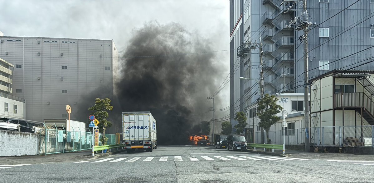 ガソリンスタンドENEOS Dr.Drive平和島SSの近くで車両火災