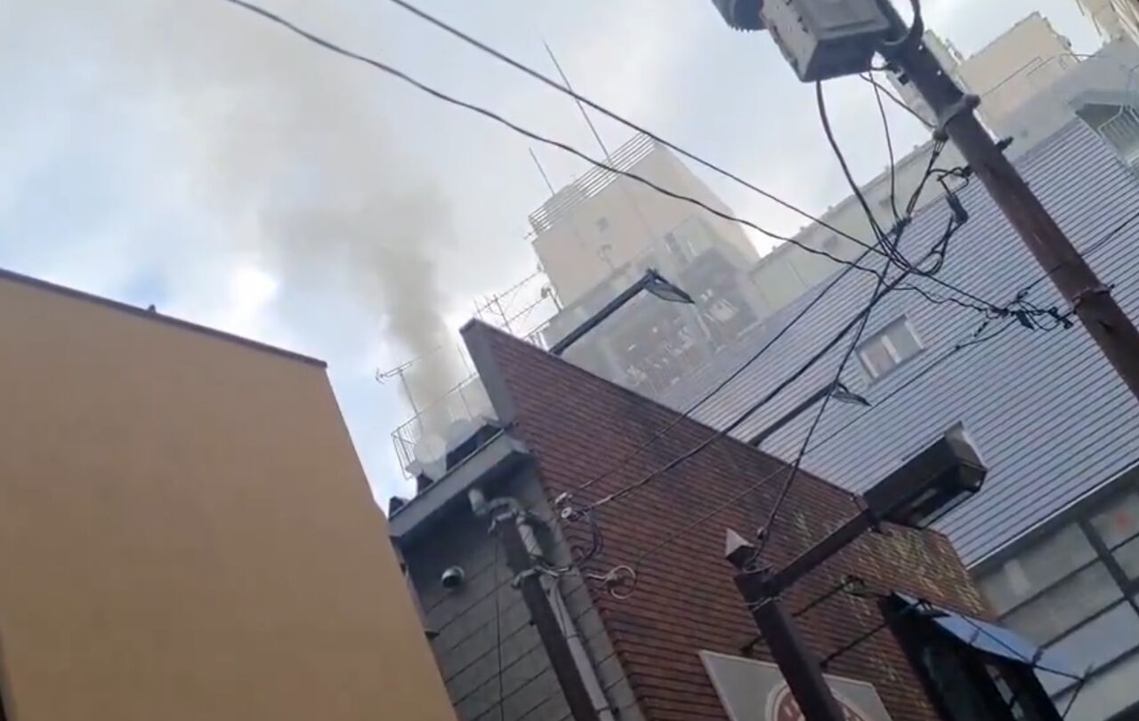 赤坂見附駅近くのビルでボヤ騒ぎ?で消防車集まってた