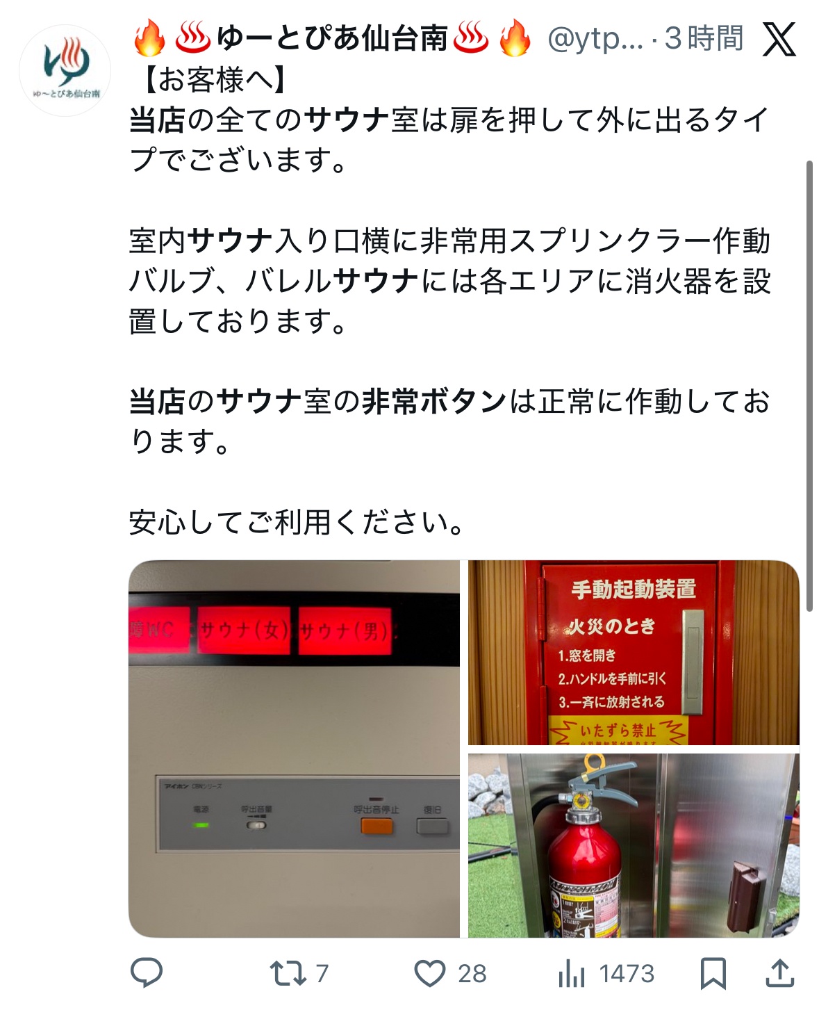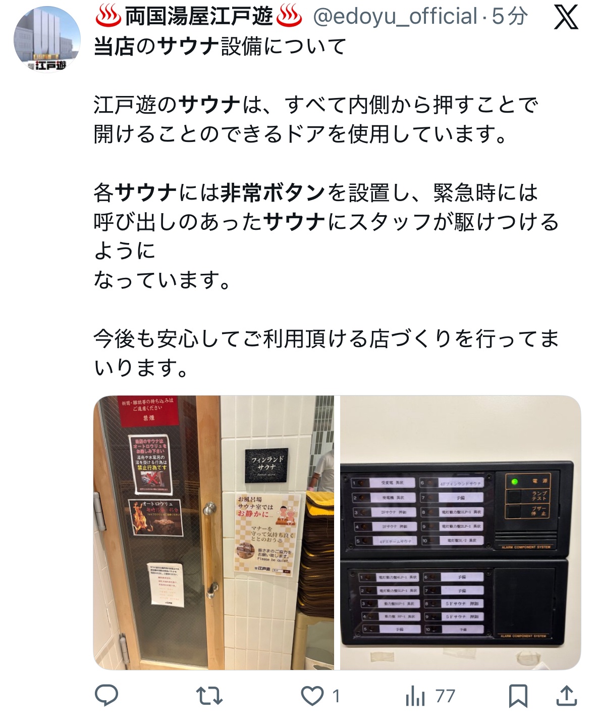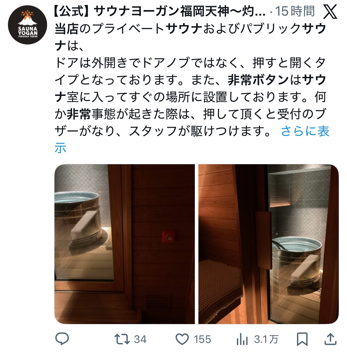 【安心安全】サウナ「うちの非常ボタンは大丈夫ですから!」「うちも!」「うちのも!」 2025/12/19 トレンド https://alfalfalfa.com/articles/10980506.html 1: こういう危機察知能力がある所は安心だね document.write(” + ”); 関連記事 【悲報】赤坂サウナオーナー「非常ボタン受信盤の電源入れたことない」 【悲報】サウナのドアノブ外れる 非常ベル鳴らない 従業員不在←new 【闇深】死の個室サウナの非常ボタン、全室で故障していた 【画像】赤坂の月額39万円のプライベートサウナ、人間ぶっ殺しゾーンだった 【悲報】プライベートサウナ死亡事故、サウナ室のドアノブ外れ閉じ込められた可能性 【画像】Lカップの女性がビキニを付けた代償、レベチwwwwwwwwwwwwwwwwwwwwwwwww document.write(” + ”); 続きを読む ——— Source: alfalfalfa.com 【安心安全】サウナ「うちの非常ボタンは大丈夫ですから!」「うちも!」「うちのも!」