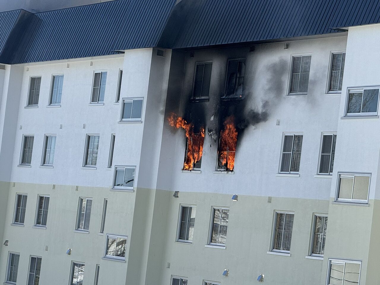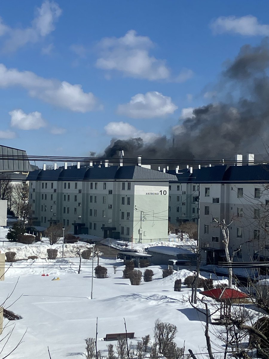 【火事情報】北海道札幌市南区真駒内曙町1丁目 あけぼの団地付近 建物から炎と黒煙あがる火災3月11日 #北海道 #札幌 #真駒内 #火災