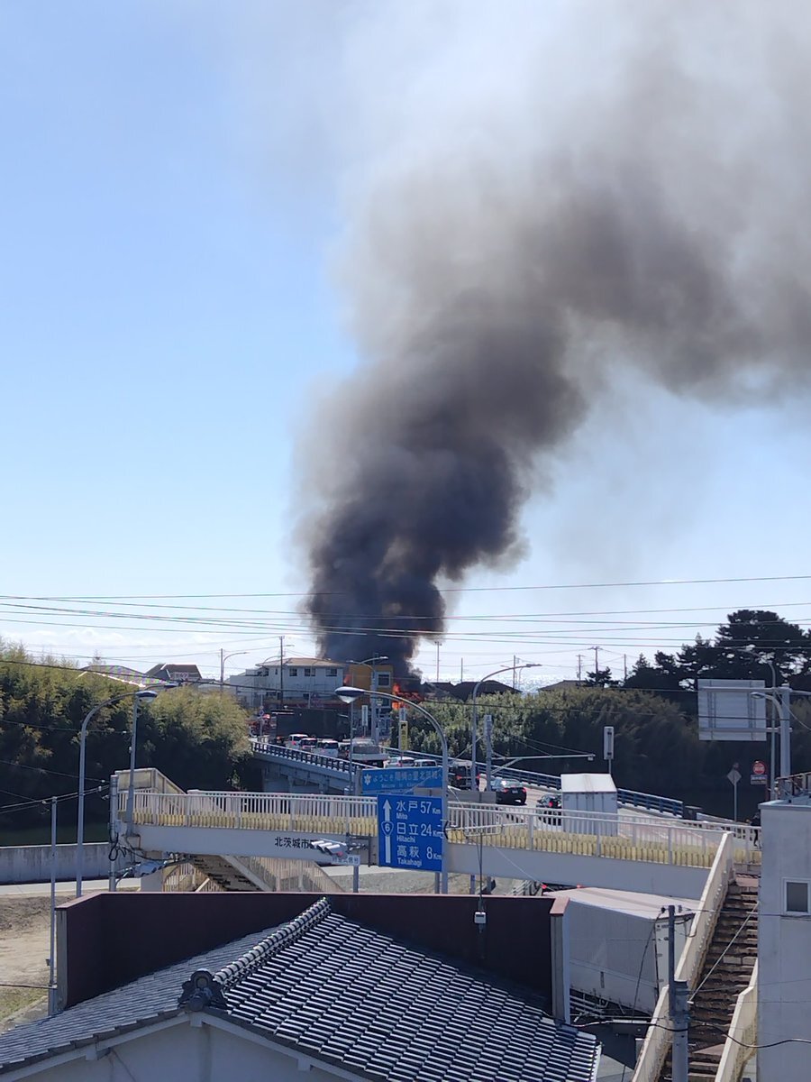 【火事情報】茨城県北茨城市中郷町下桜井 国道6号線沿い付近 建物から炎と黒煙あがる火災3月12日 #茨城 #北茨城 #磯原 #火災