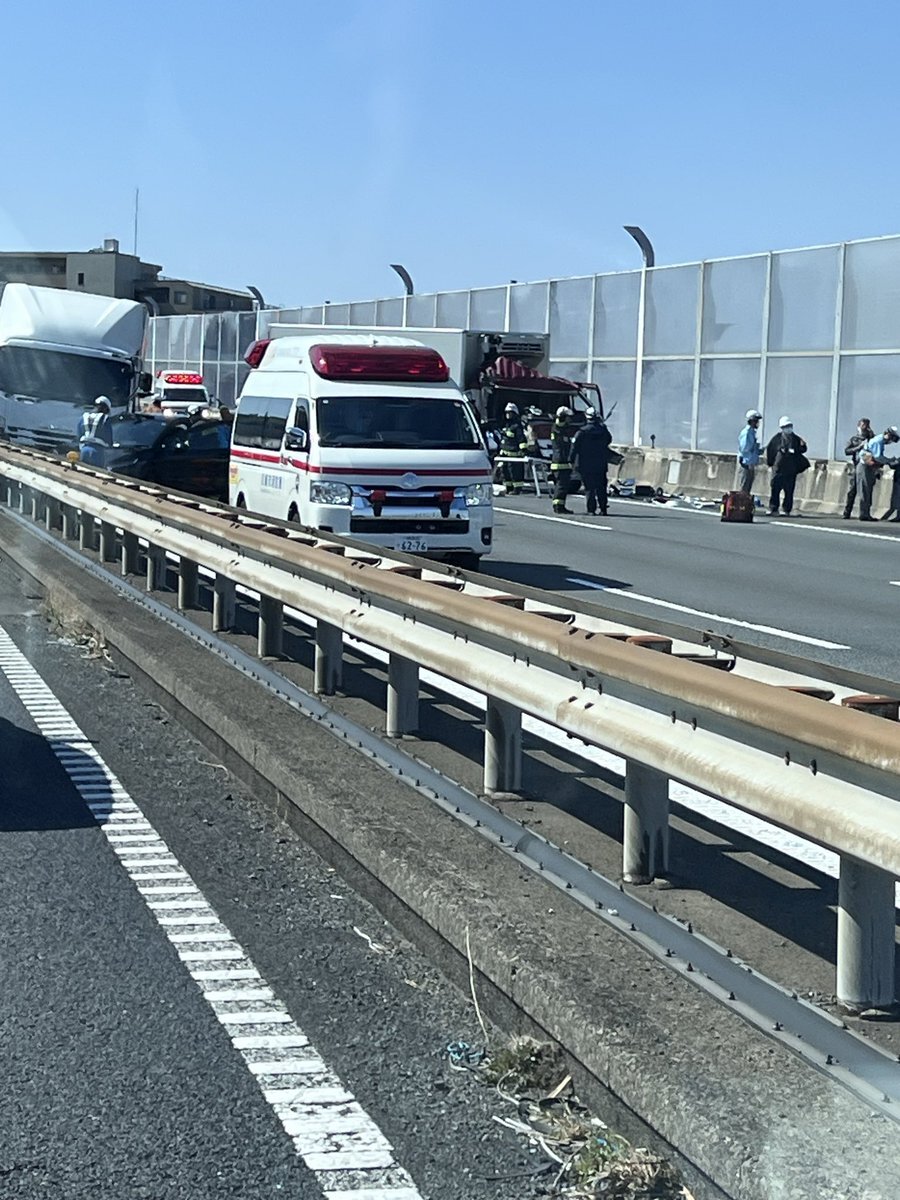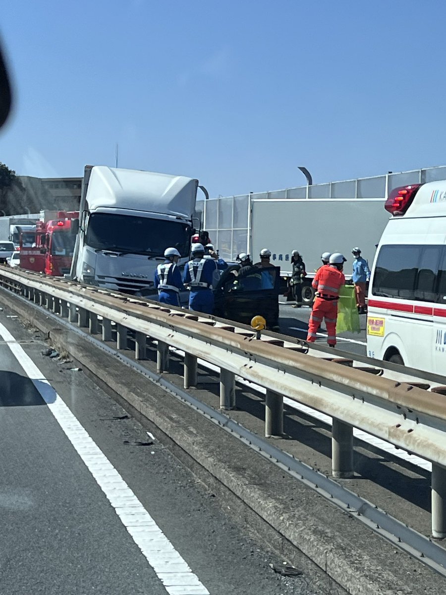 【現場の状況】#交通情報 東名高速 上り 東名川崎IC ~ 東京IC付近 車線塞ぐトラック2台や乗用車2台バイクなどからむ多重事故で通行止め渋滞3月12日 #東名高速 #川崎