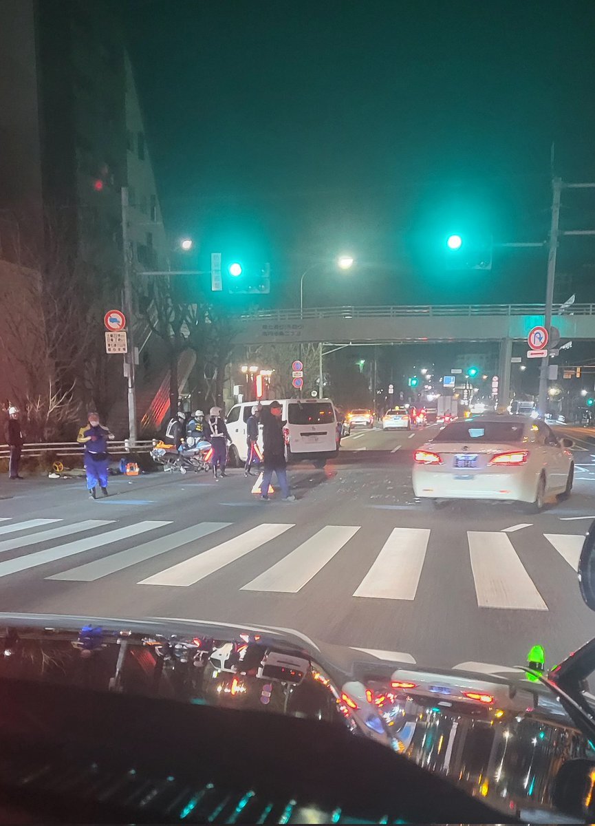 『環七で帰ってる途中に目の前で事故が…横を通る時のガラスのパリパリ音が生々しかった。』