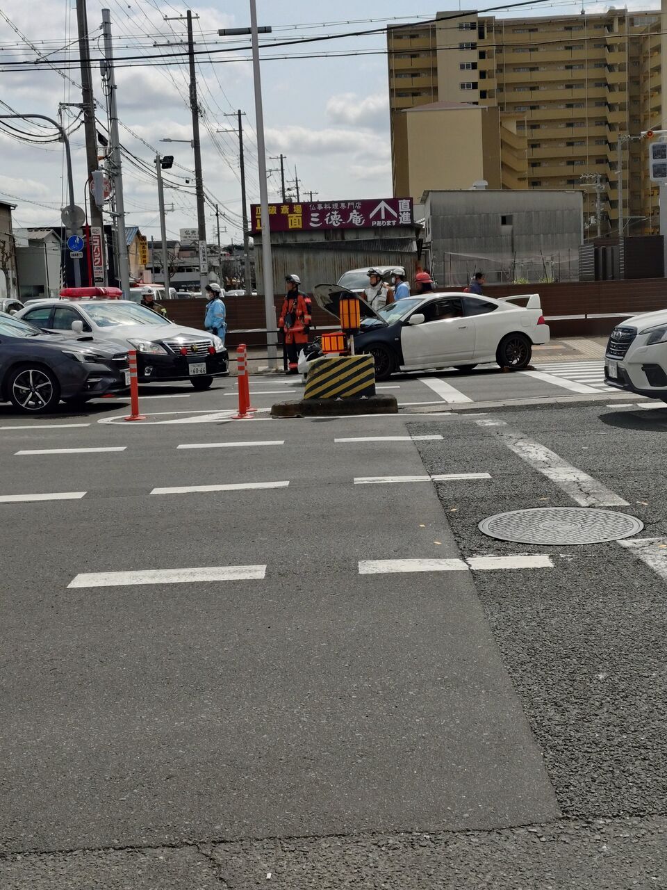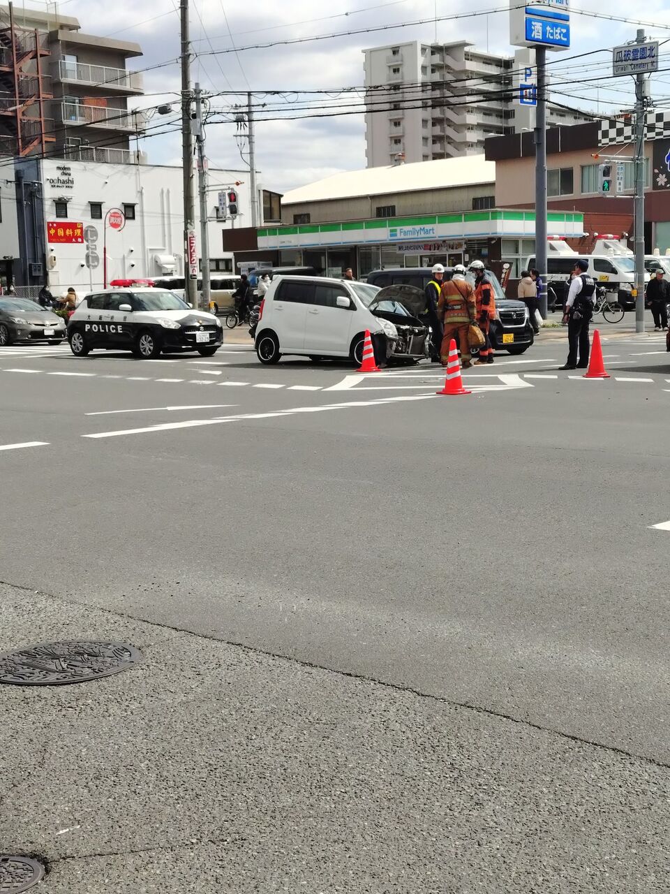 家🏡の近くにあるゲオの前にある交差点で交通事故発生して警察👮と消防のレスキュー隊が来ていた pic.twitter.com/jrfctY1Tw9