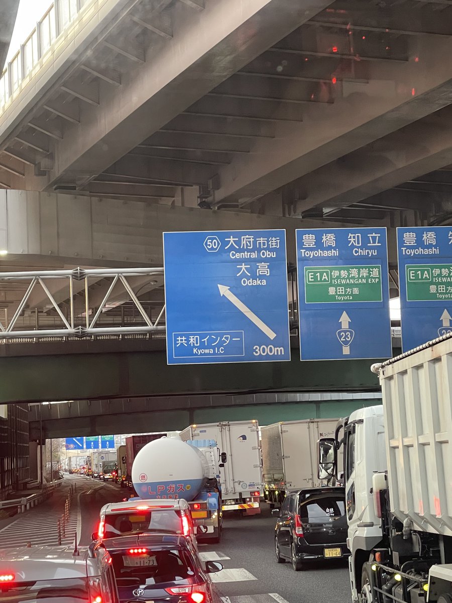 『23号また盛大に事故っててトラックが単独横転しててまともに流れてない😕』