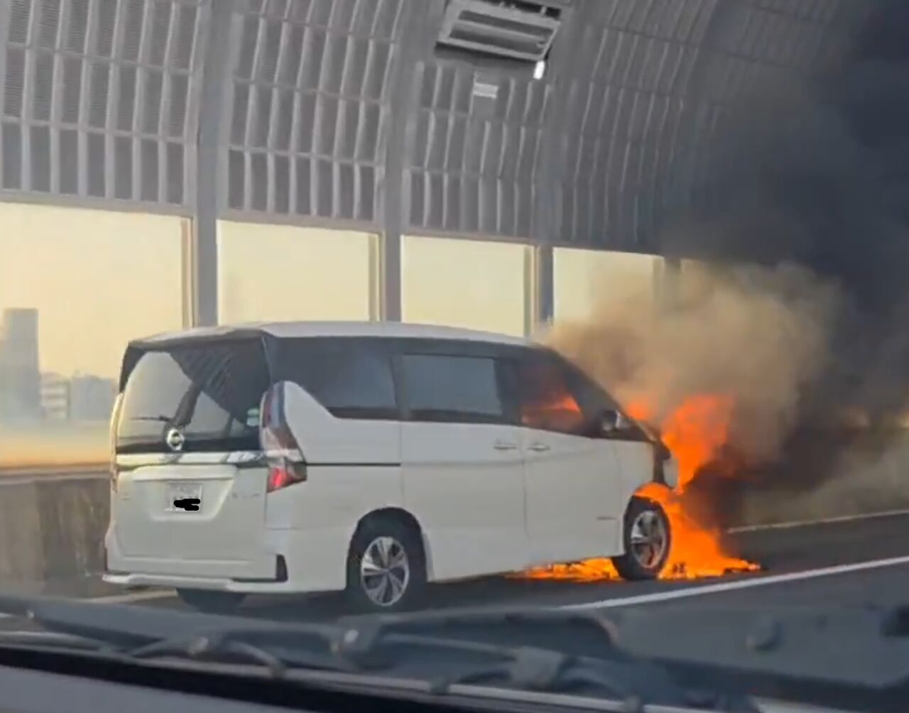 名ニ環で車燃えてた… pic.twitter.com/Kd2gM7Jd5u