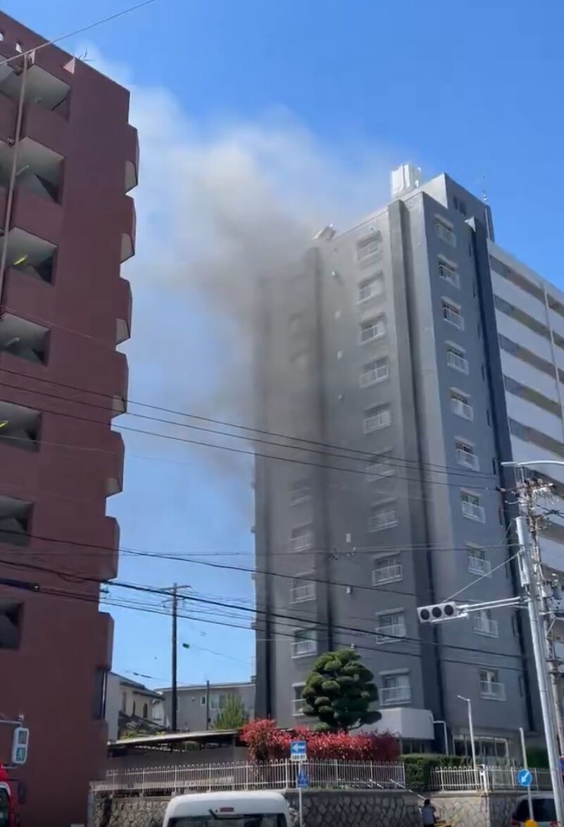 【火事情報】愛知県名古屋市瑞穂区豊岡通1丁目 山手グリーンロード沿い付近 集合住宅建物から煙あがる火災4月8日 #愛知 #名古屋 #火災