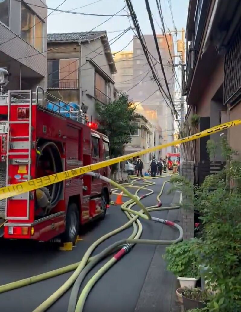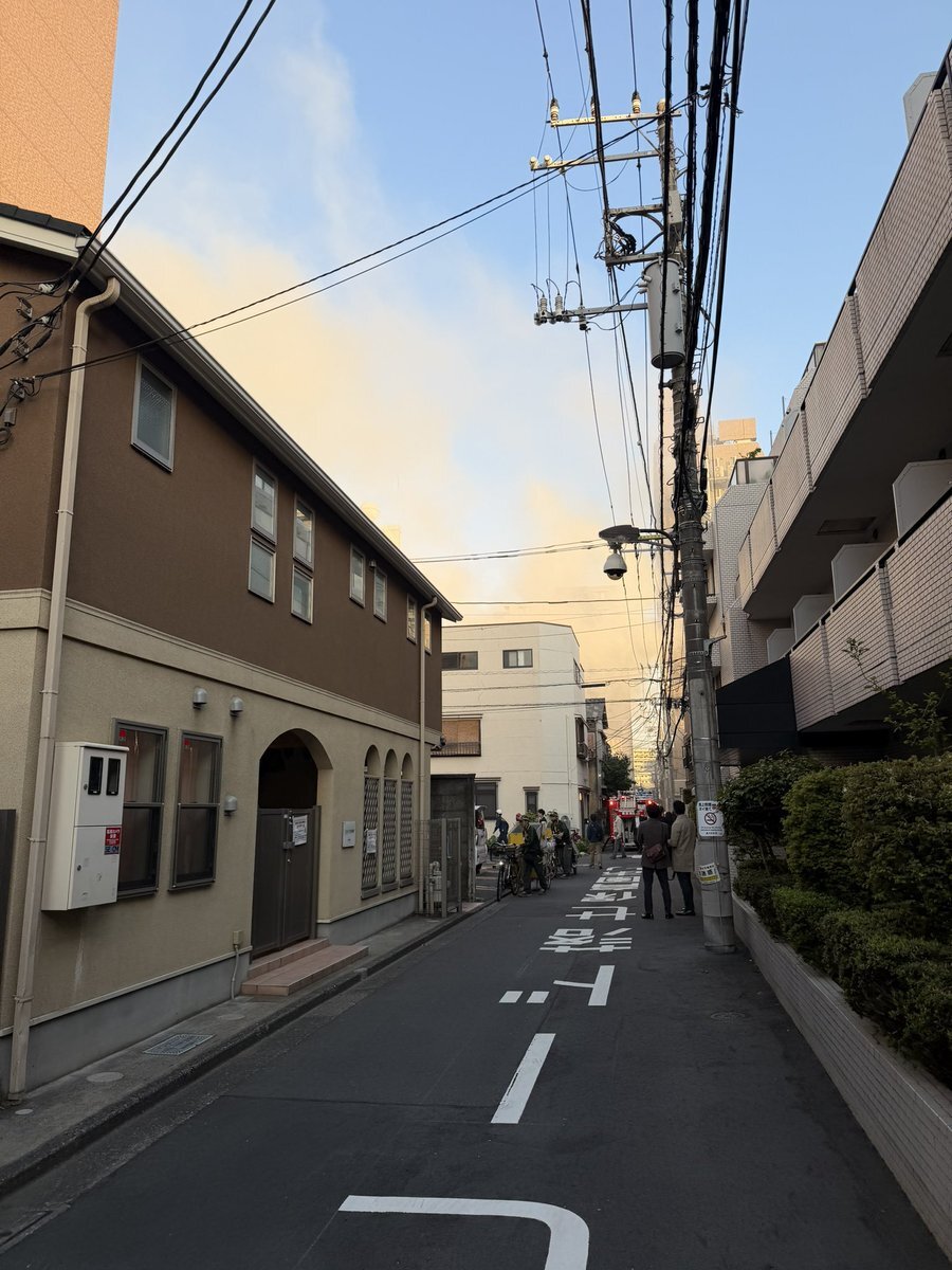 千石一交差点から松屋の裏路地に入った近くの建物から発煙