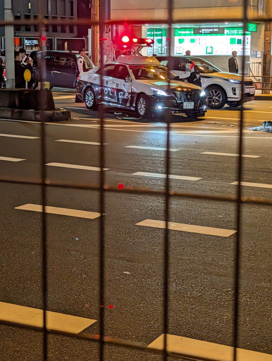 天王寺で逃走中の車にぶつけられそうになってヒヤッてしたわ。。。
