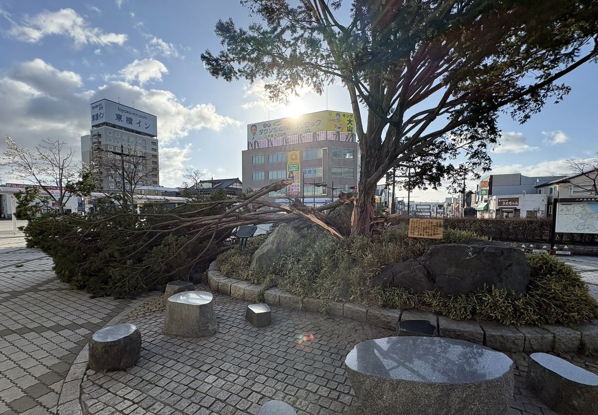 八戸駅前のシンボルの木も倒れました』