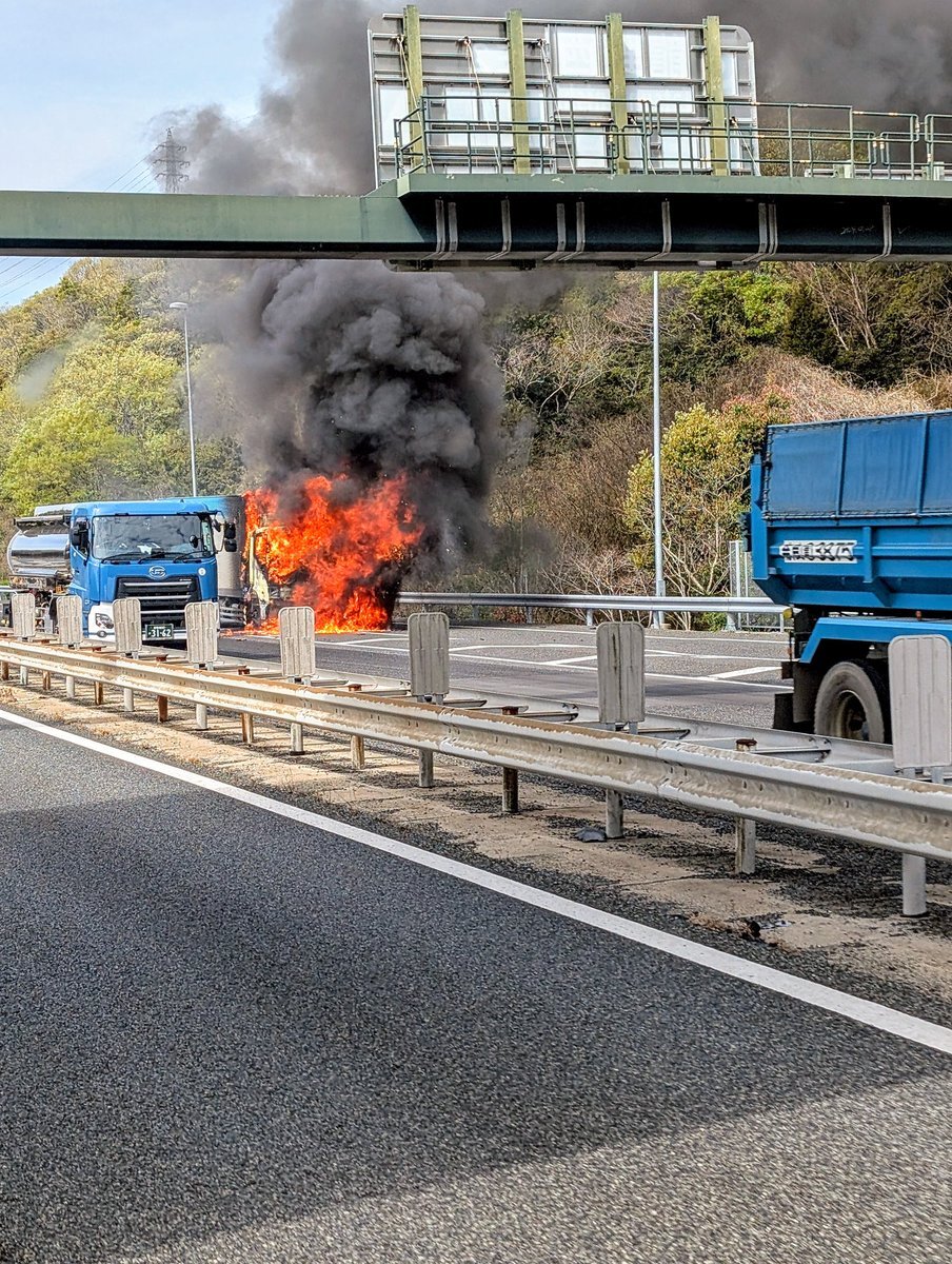 【火事情報】#交通情報 山陽道 上り 赤穂IC~播磨JCT付近 トラック燃える車両火災事故で通行止め渋滞4月14日 #兵庫県 #たつの市 #火災